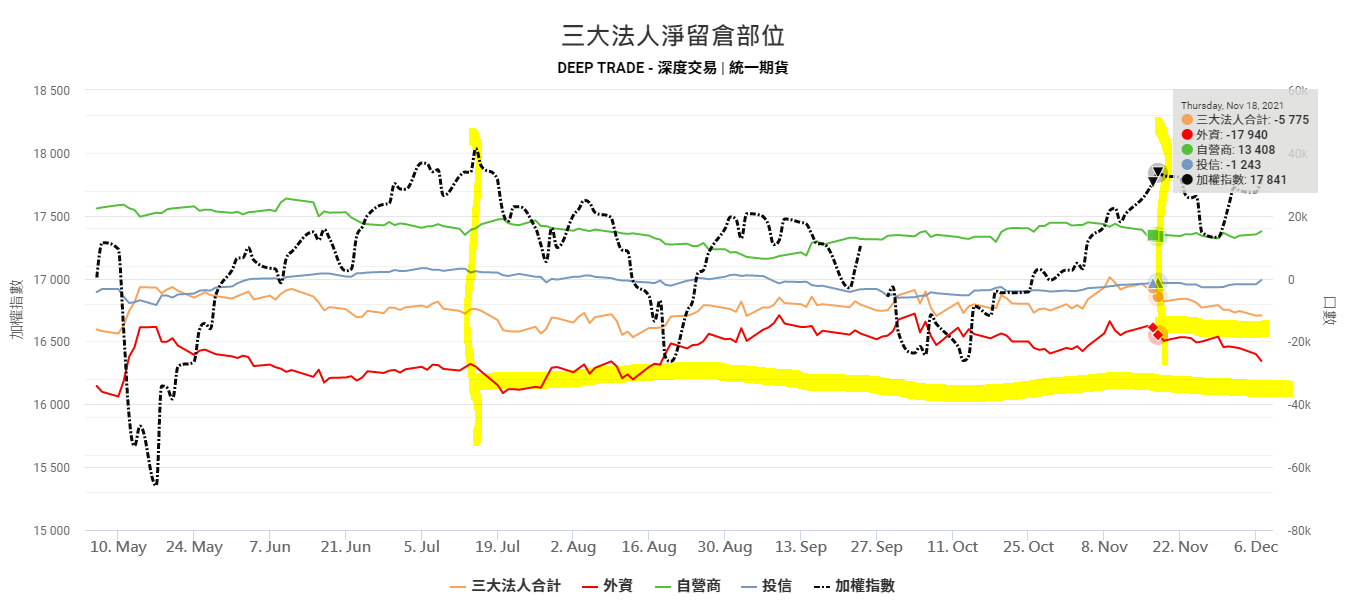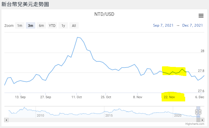 由台幣走勢可以看到,在11月底的下殺盤,外資資金並沒有外流